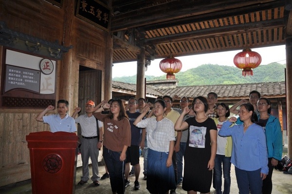 參觀完舊址后,在黨委書記李震的帶領下,新老黨員面對舊址大廳鮮紅的黨旗莊嚴宣誓。通過組織新黨員進行入黨宣誓和老黨員重溫入黨誓詞行動,讓黨員“不忘初心、牢記使命”,不斷保持共產黨員的先進性,以更加飽滿的熱情投身各自工作,切實發揮先鋒模范作用,永葆共產黨員的政治本色。