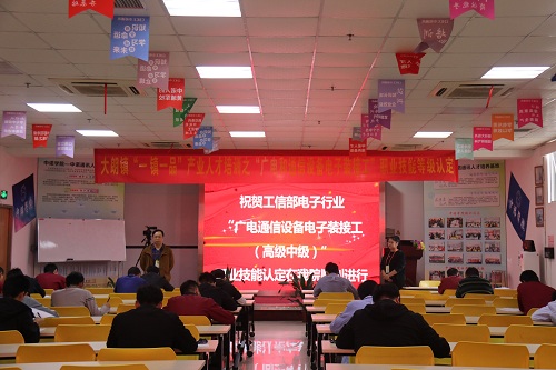 202016日,東莞市大朗鎮“一鎮一品”產業人才培訓之“廣電和通信設備電子裝接工”職業技能等級認定在福日電子控股企業深圳市中諾通訊有限公司中諾學院舉辦。考評專家來自東莞市人社局、廣東省質量協會、東莞市質量協會、東莞市技師學院等單位。