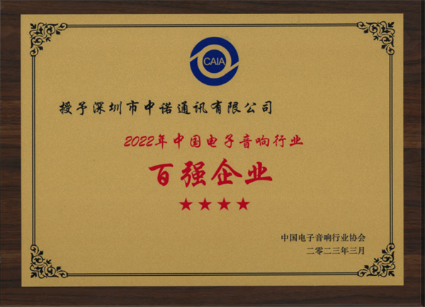 據(jù)悉,該榜單以行業(yè)企業(yè)2022年的企業(yè)生產(chǎn)總額、營收數(shù)據(jù)、企業(yè)估值等作為入圍標(biāo)準(zhǔn)。入選企業(yè)均為電子音響行業(yè)內(nèi)的佼佼者與領(lǐng)軍者,此次榮登行業(yè)百強榜單是市場對中諾通訊的充分肯定。