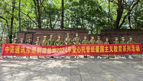 此外,中諾通訊黨工團建設部特別策劃了“愛國主義教育系列活動”。孩子們參觀了廣東東江縱隊紀念館,深入了解革命先烈的英勇事跡,激發了他們的愛國熱情;學唱紅歌《我的祖國》,用稚嫩的歌聲表達對祖國的祝福;學習軍姿軍禮,在公司退伍軍人唐有伍的指導下,孩子們通過站軍姿、敬軍禮,向祖國致以崇高的敬意。沉浸式的教育模式,讓孩子們在“學中玩、玩中學”中增長了見識,體驗了樂趣,在他們幼小的心靈里種下了愛國的種子。活動結束后,孩子們還用文字和畫筆記錄了自己的所見所感,色彩描繪出心中的祖國。此次托管班不僅為職工子女提供了優質的暑期托管服務,更在寓教于樂中激發了孩子們的愛國情懷,成為東莞托管班的一大特色。