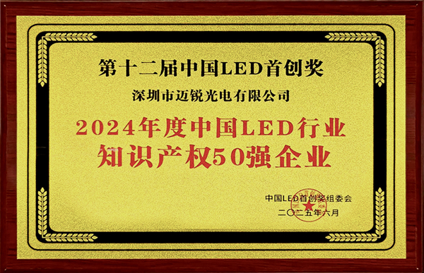 2025年6月,在第十二屆中國(guó)LED首創(chuàng)獎(jiǎng)?lì)C獎(jiǎng)典禮上,福日電子成員企業(yè)邁銳光電成功入選“2024年度中國(guó)LED行業(yè)知識(shí)產(chǎn)權(quán)50強(qiáng)”,以突出技術(shù)創(chuàng)新力與知識(shí)產(chǎn)權(quán)管理能力贏得行業(yè)高度認(rèn)可。